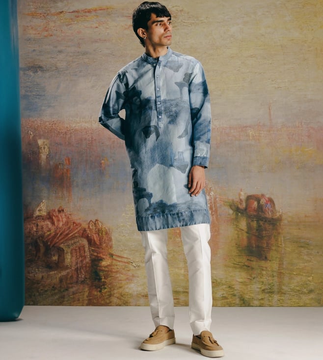 Maple & Cosmic Blue Ombre Surrealist Outline Kurta Set