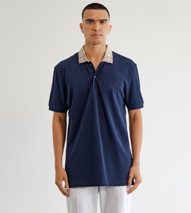 Dark Sapphire Supima Cotton Pique Relaxed Fit Botanic Jali Polo