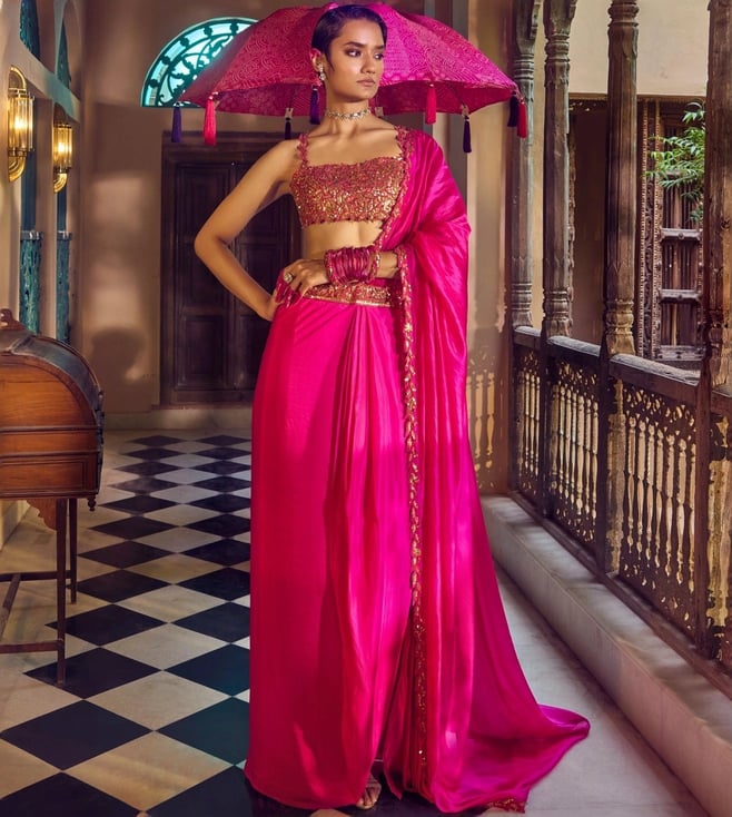 Gulabi Gulaal Johari Bazaar Johari Gulabi Gulaal Saree With Waist Coat