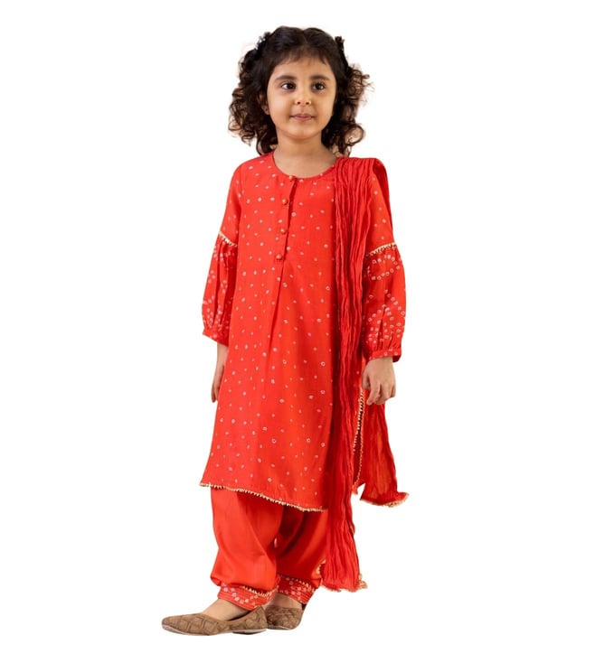Rose Bandhej Aarvi Kurta with Salwar and Dupatta