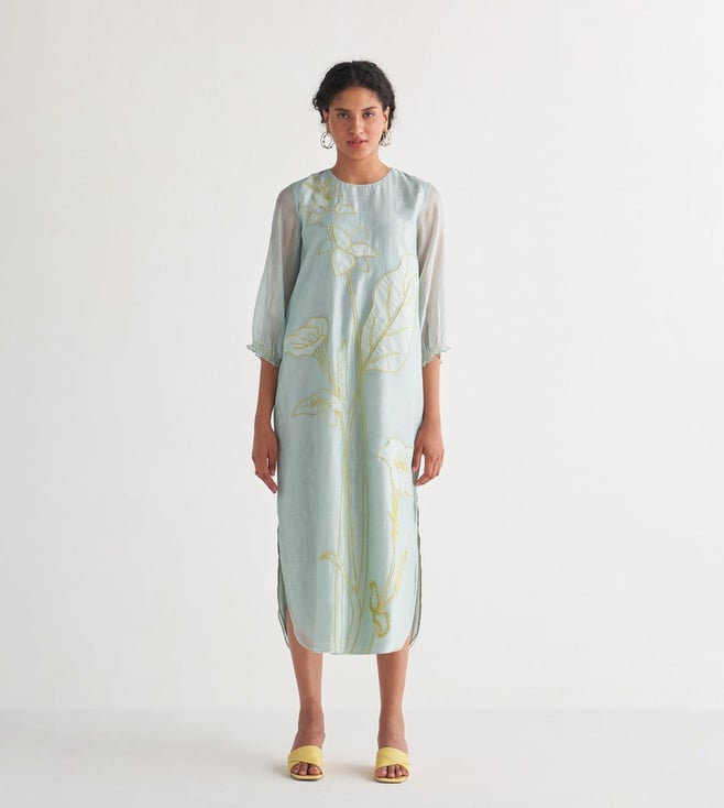 Powder Blue Song Of Summer Sea Breeze Applique Gathered Dress