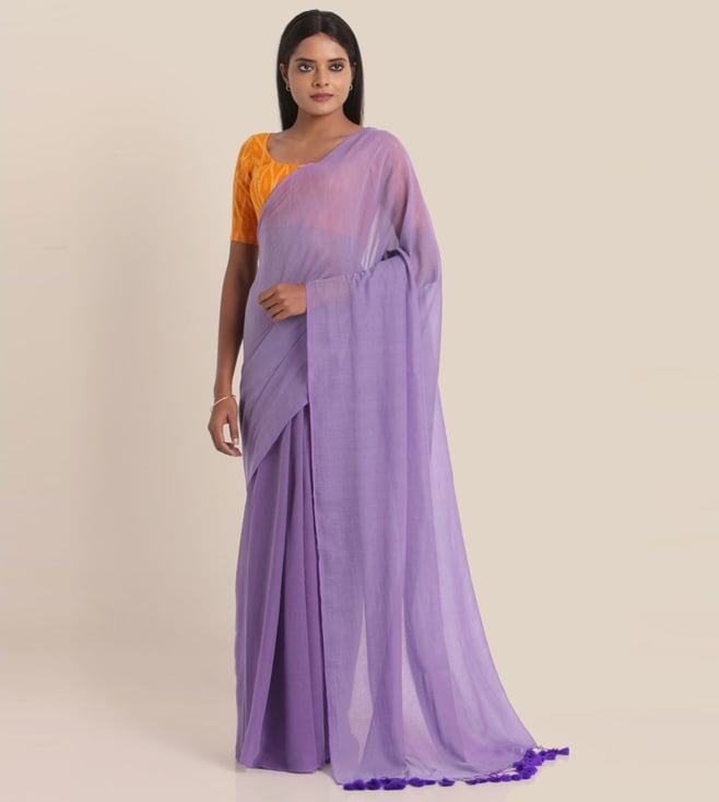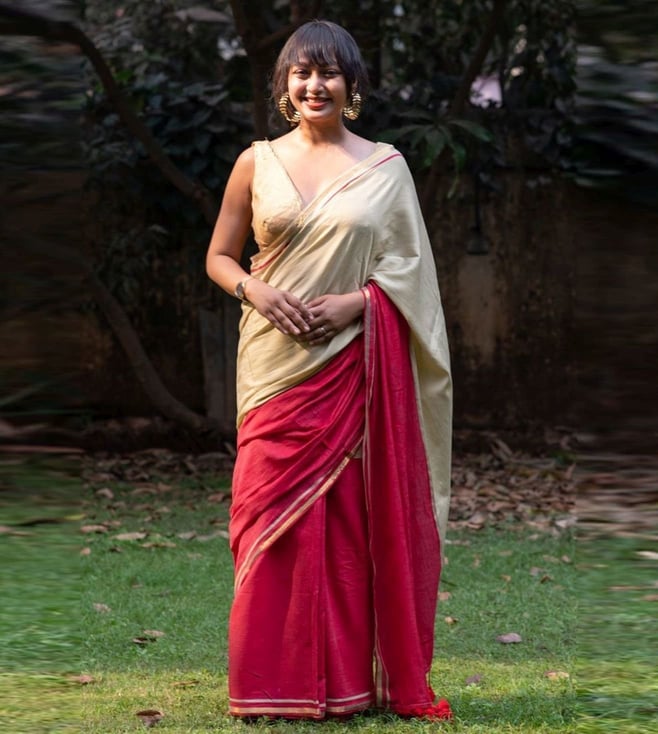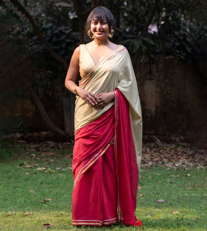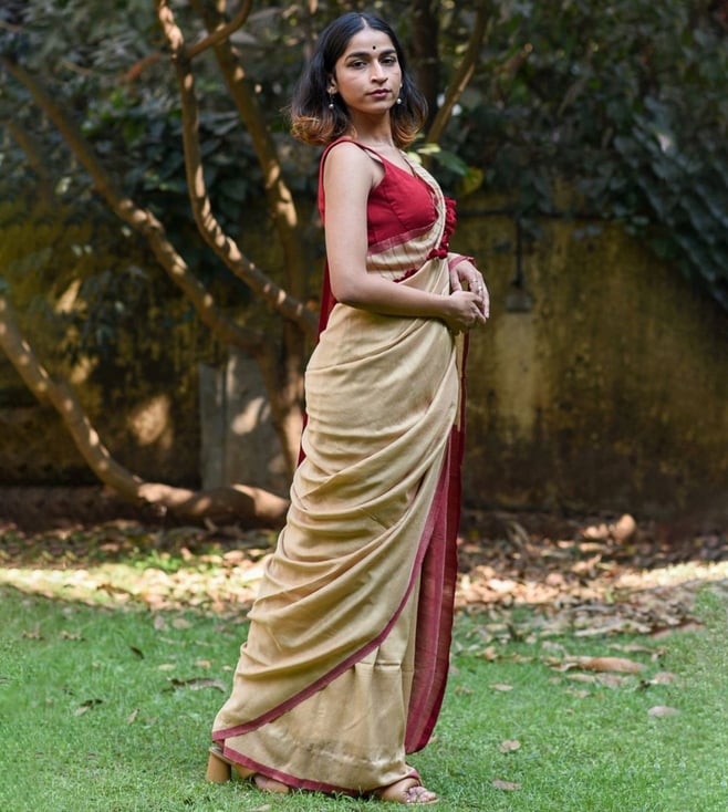 Beige Cotton Embellished Saree Without Blouse