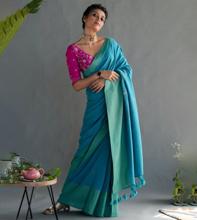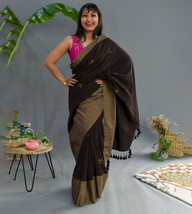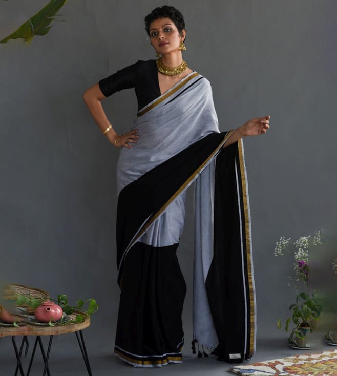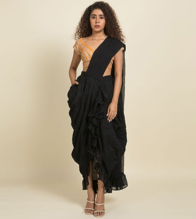 Black Pure Cotton Ready to Wear Saree Without Blouse