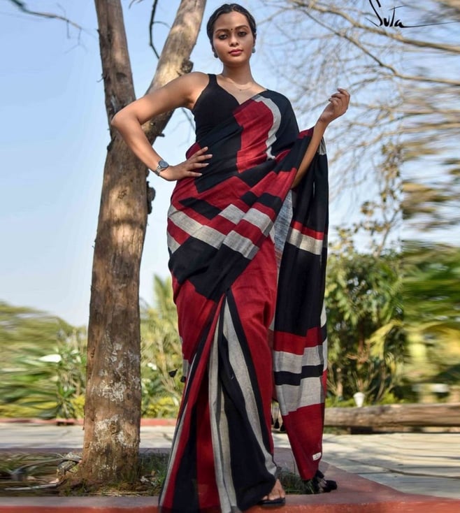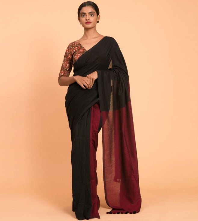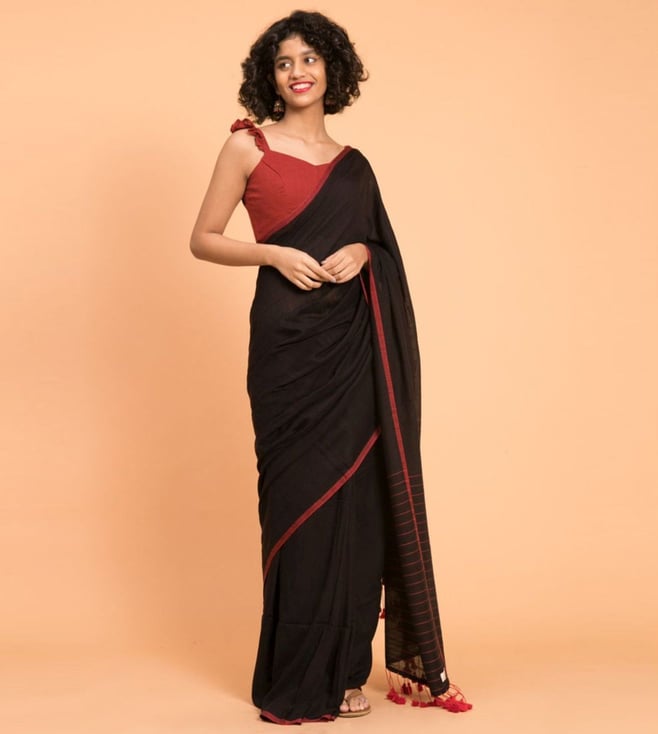 Black & Red Pure Cotton Saree With Unstiched Blouse