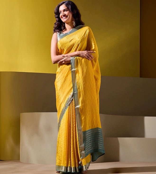 Yellow Woven Pure Silk Cotton Chanderi Saree
