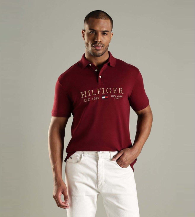 Red Cotton Regular Fit Logo Printed Polo T-Shirt