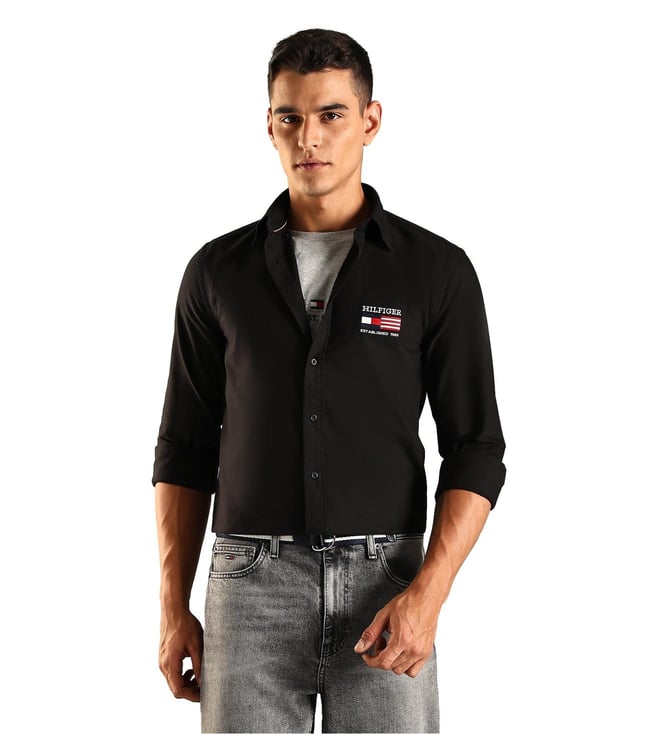 Europe Collection Black Cotton Slim Fit Solid Jeans