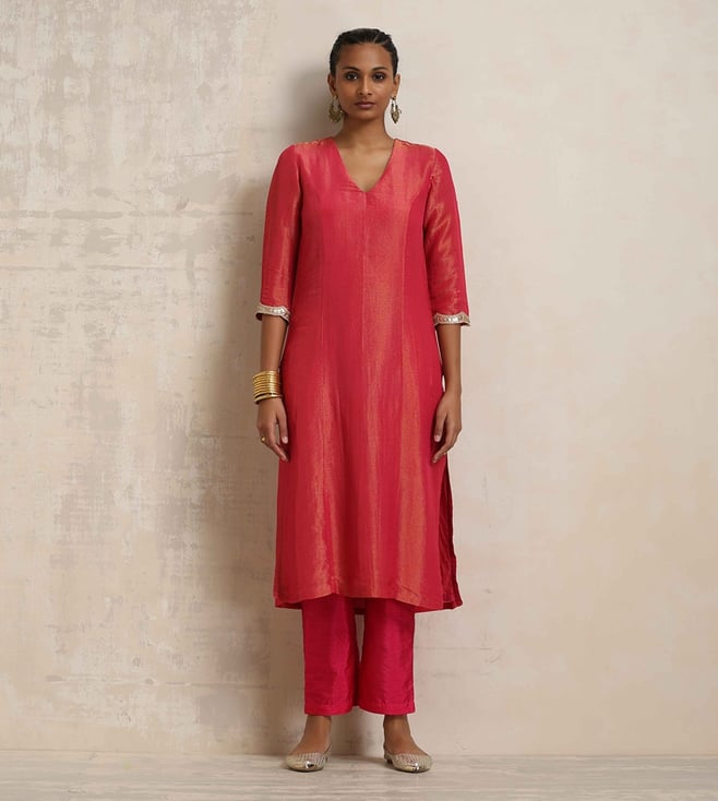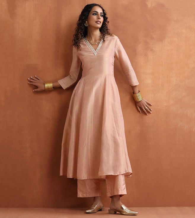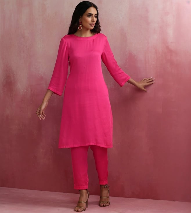 TrueBrowns Pink Modal Round Neck Kurta with Pant Co-ord Set