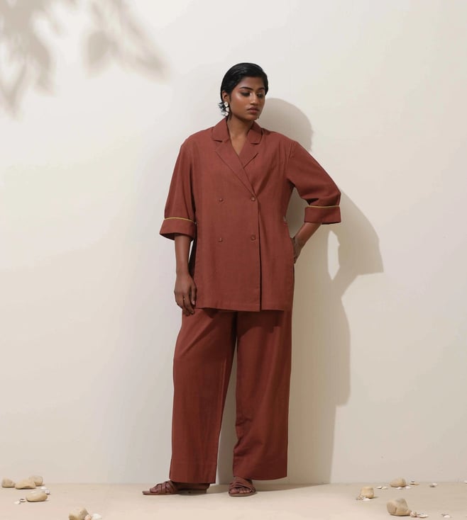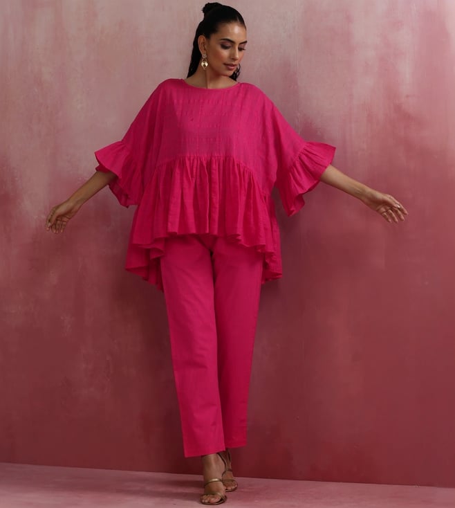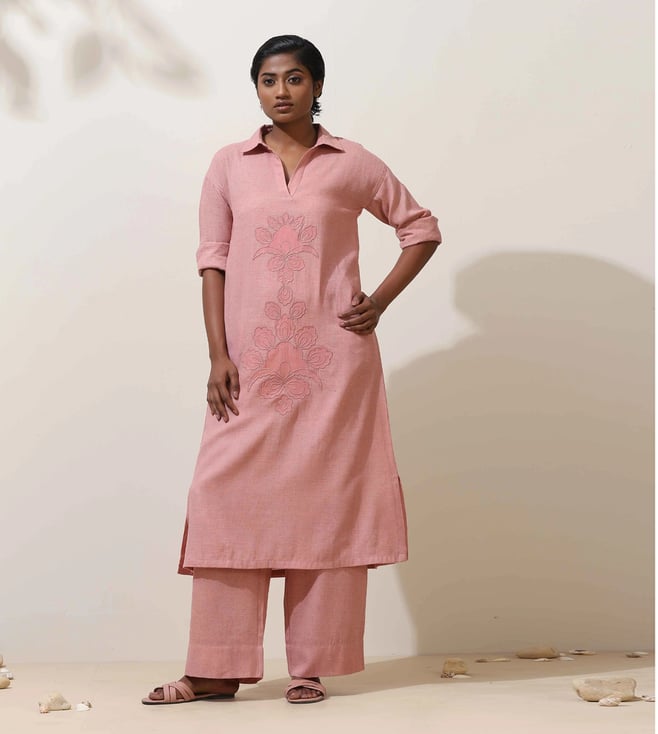 TrueBrowns Pink Cotton Dobby Kurta with Pant Co-ord Set