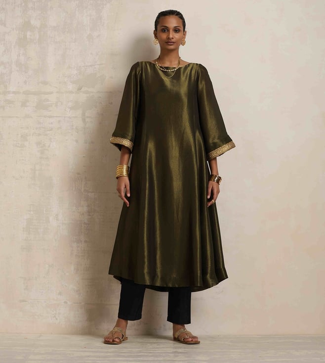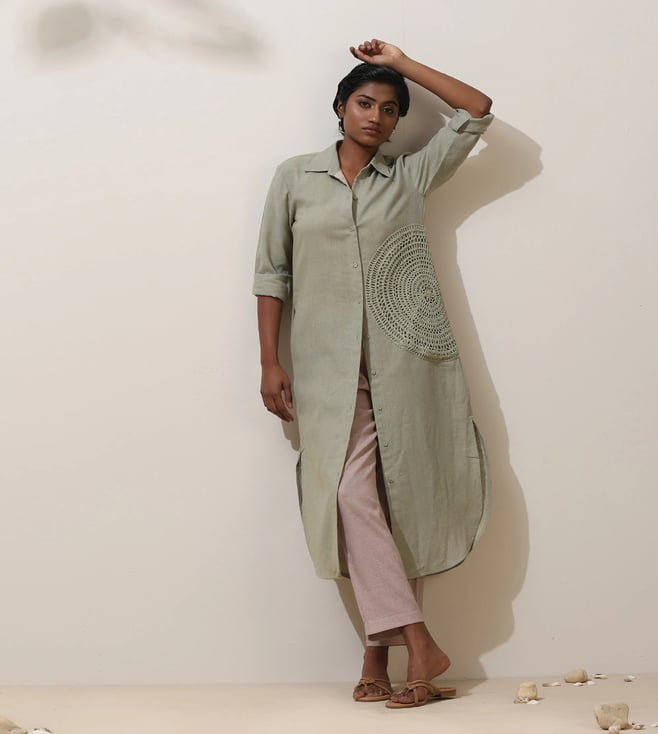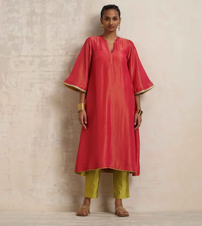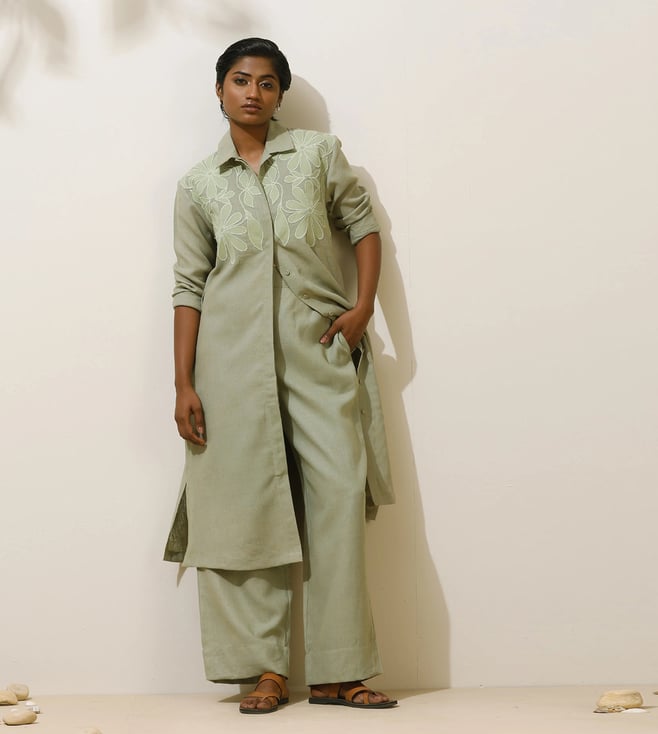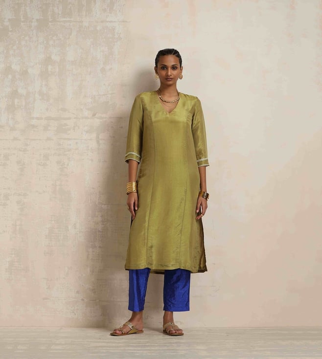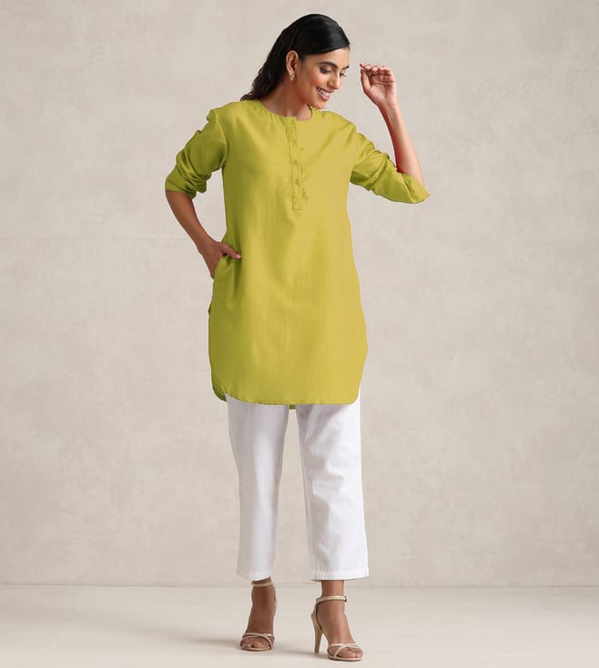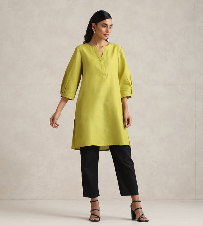 TrueBrowns Lime Green Short Kurta with Pant Co-ord Set
