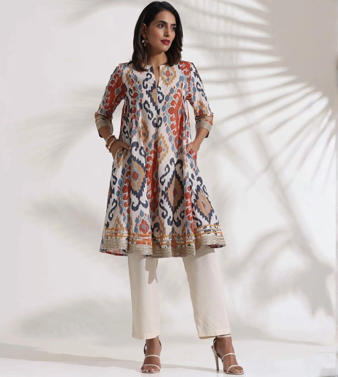 Off White Ikat Print Anarkali Kurta Co-ord Set
