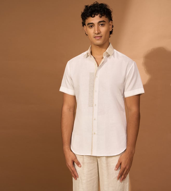 White Linen Slim Embroidery Shirt
