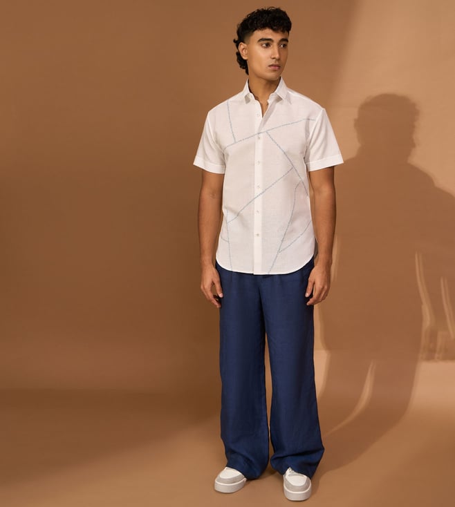 White Cotton Linen Slim Embroidery Shirt