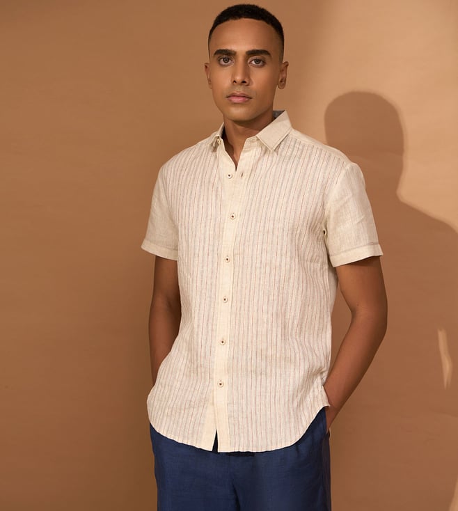 Beige Linen Slim Solid Shirt