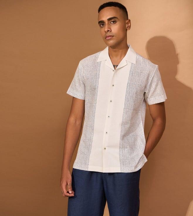 White Linen Slim Print Shirt