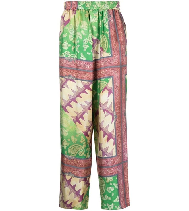 Multicolor Multicolour Printed Silk Regular Fit Trousers