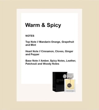 Amber, Spicy Notes, Leather, Patchouli and Woody Notes