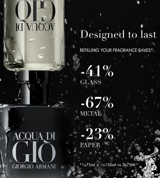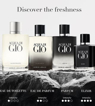 The deep and intense cologne, capturing the powerful sensations of nature. A woody aromatic cologne combining bergamot with rosemary essence and incense notes to create an intensity that is vibrant and charismatic. Formulated with sustainably sourced ingredients like bergamot heart, clary sage heart and patchouli essence. Fragrance family: woody aquatic. Armani Acqua Di Gio Parfum is refillable in all formats.
