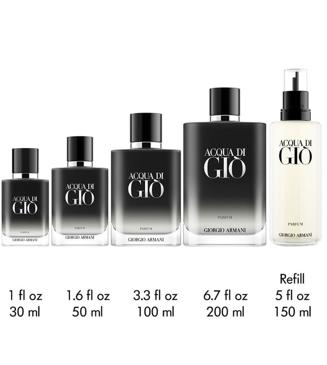 The deep and intense cologne, capturing the powerful sensations of nature. A woody aromatic cologne combining bergamot with rosemary essence and incense notes to create an intensity that is vibrant and charismatic. Formulated with sustainably sourced ingredients like bergamot heart, clary sage heart and patchouli essence. Fragrance family: woody aquatic. Armani Acqua Di Gio Parfum is refillable in all formats.