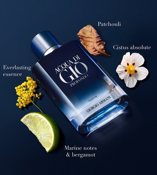 Armani Acqua Di Gio Profondo Parfum captures the addictive and intense attraction of the sea's unknown depths. Conveying a sensation of deep freshness, the fragrance encapsulates the experience of being immersed in the ocean's mysteries. The fragrance's captivating juice evokes a dense, resinous and mineral facet of Armani Acqua Di Gio Profondo Parfum. Crafted around bergamot notes, balsamic cistus absolute and the richness of everlasting essence, these notes lend Armani Acqua Di Gio Profondo Parfum its depth and intensity.
