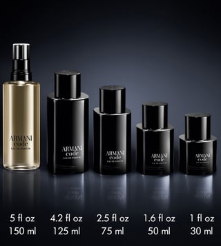 Armani Code Eau de Parfum, a new compelling and vibrant intensity, encapsulated in the iconic Armani Code Eau de Parfum refillable bottle. A new fougere ambery spicy fragrance that opens with a faceted freshness with notes of green mandarin and unfolds into a spicy and woody heart of nutmeg essence. A masculine sensuality emerges from the fragrance's base through a rich and warm tonka bean absolute.