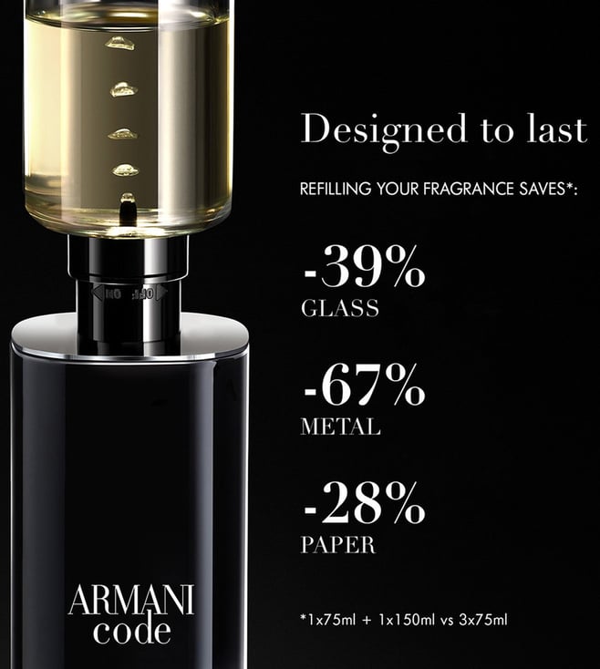 Armani Code Eau de Parfum, a new compelling and vibrant intensity, encapsulated in the iconic Armani Code Eau de Parfum refillable bottle. A new fougere ambery spicy fragrance that opens with a faceted freshness with notes of green mandarin and unfolds into a spicy and woody heart of nutmeg essence. A masculine sensuality emerges from the fragrance's base through a rich and warm tonka bean absolute.