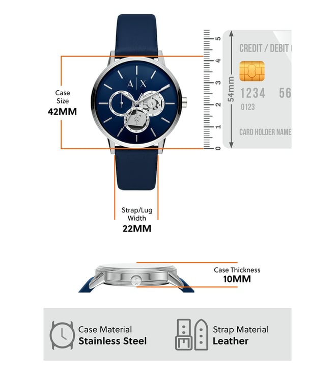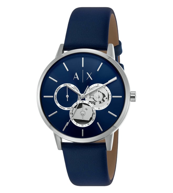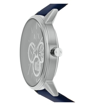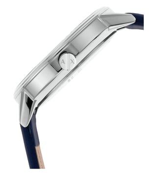 Lending a contemporary twist to an elegant design, this men analog watch from Armani Exchange is a must-have wrist essential. Its strap comes in a shade of navy that elevates the look of the watch. The navy round dial is secured by a mineral glass and is housed in a case. It exudes multifunction, and a crown for time adjustment. Furthermore, it is completed with a buckle clasp to ensure a secure fit on the wrist.