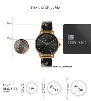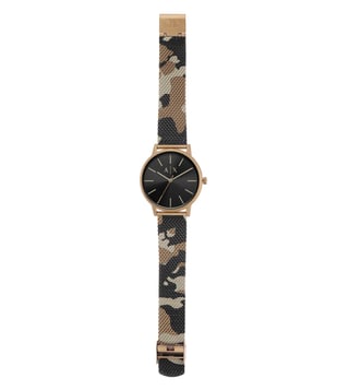 A must-have timepiece for all the watch aficionados, this men's analog watch from Armani Exchange will be a perfect pick. Armani Exchange's 42mm watch features a black sunray dial, three-hand movement, camo pattern stainless steel mesh strap and bronze-tone at least 50% recycled stainless steel case. The black round dial is protected by a mineral glass. The stainless steel strap comes in a multi hue that further elevates the look of the timekeeper. Besides, it is completed with a deployment clasp to ensure a secure fit on the wrist.
