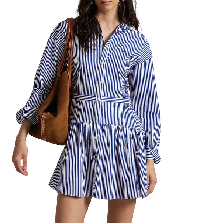 Blue Striped Cotton Paneled Shirtdress