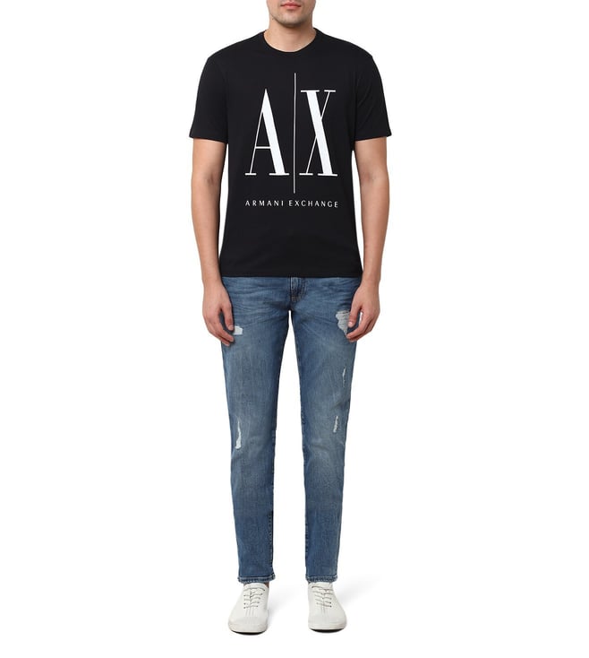The comfort of the regular model meets the contemporary style of tapered denim, to combine the look with the fit. The pair from Armani Exchange comes with a mid rise that ensures maximum comfort.