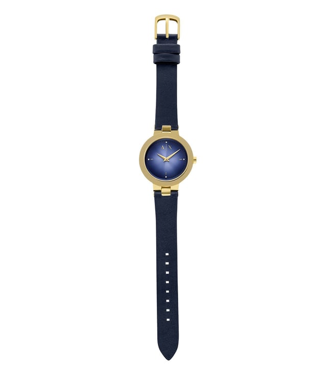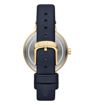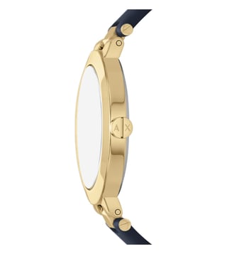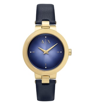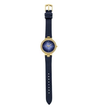 Gold-tone stainless steel meets vibrant blue leather in this streamlined design. The sunray-finished dial catches the light with a subtle texture, while the matching blue strap adds a pop of rich colour. A minimalist silhouette keeps the look clean and modern, balancing bold hues with understated details for everyday sophistication.