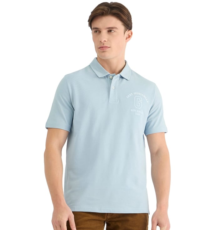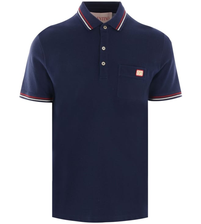Mens Blue Polo Collar Short Sleeve Embroidery T-Shirt