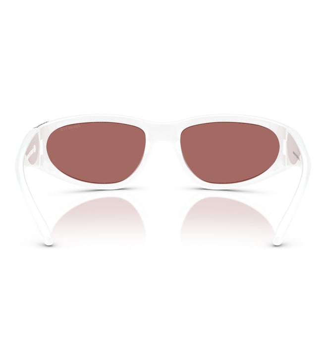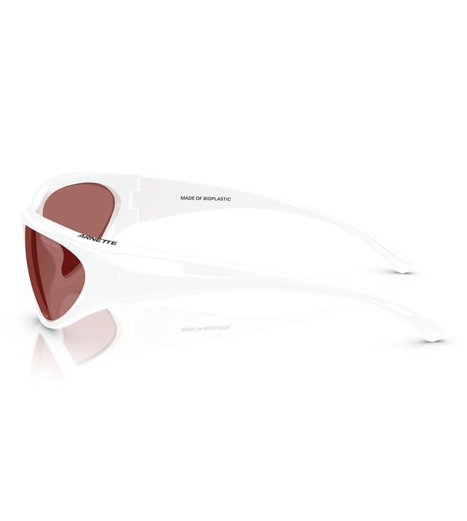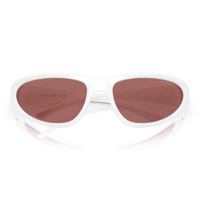 Look like a style icon wearing this pair of Sunglasses from Arnette. The Purple colored lenses are crafted using Polycarbonate that ensures complete protection of your eyes without compromising on style. Prepared with care using premium quality Plastic, the White-tone frame is very light in weight and long-lasting. Besides, the Full Rim design adds to its look.