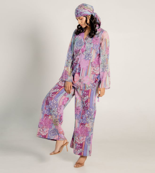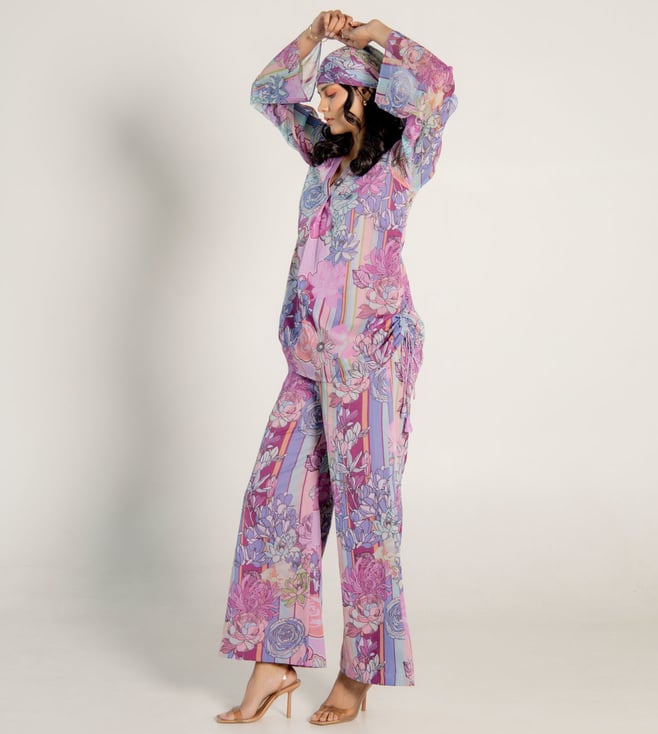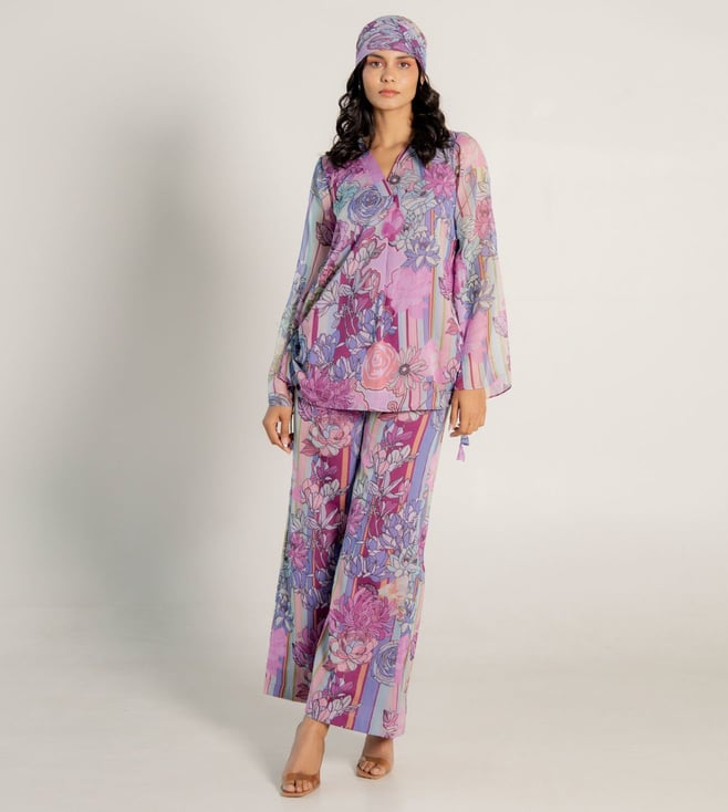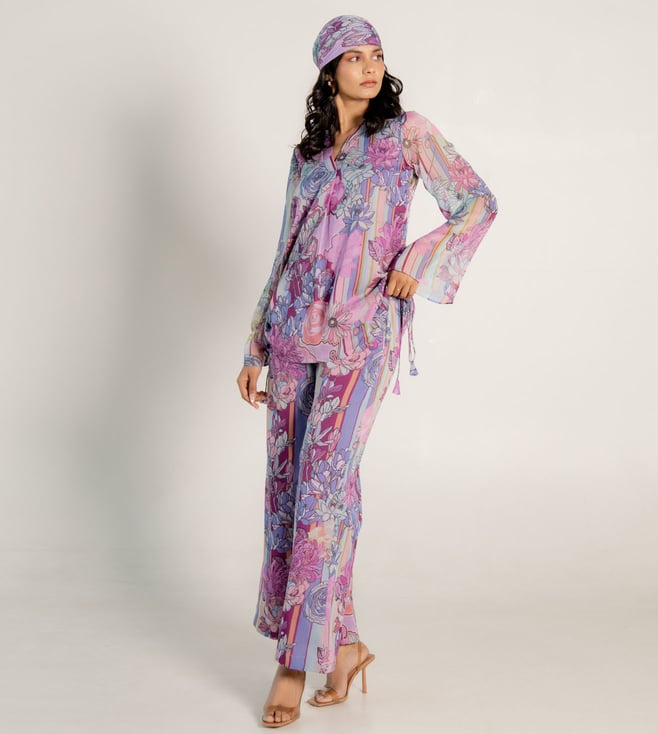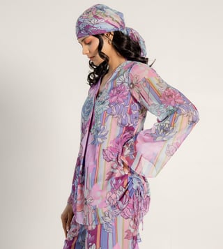 Update your casual wear collection with Aroop Shop's stylish Jenna Set! Made from eco-friendly recycled chiffon in a beautiful mauve shade, this set features a full sleeve design perfect for any occasion. Shop now and stay fashion-forward while also being kind to the environment!' Disclaimer: All other items in the image are only for display purposes and will not be a part of the delivery content. Product colour may slightly vary due to photographic lighting sources. Country of Origin - India.