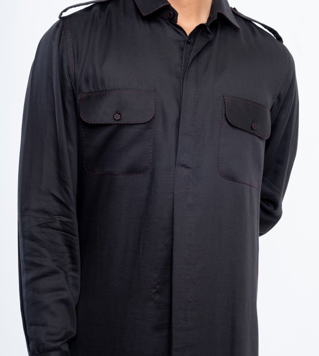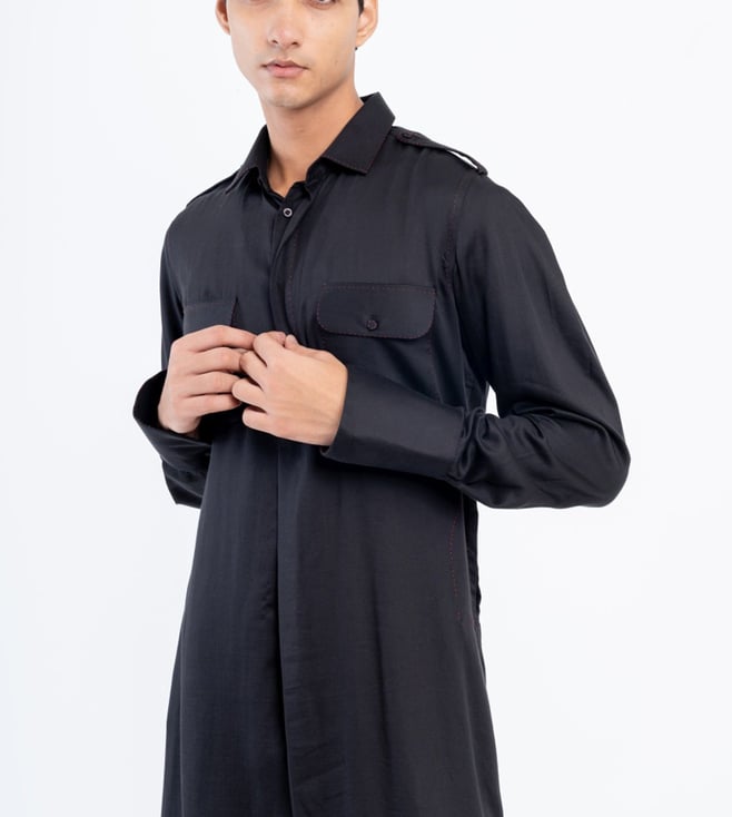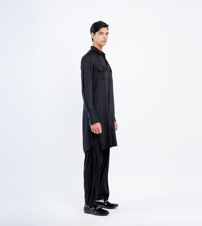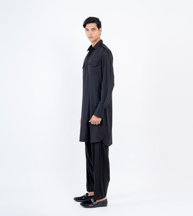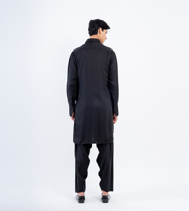 Ashish N Soni Black Plain Pathani Kurta With A Pathani Salwar