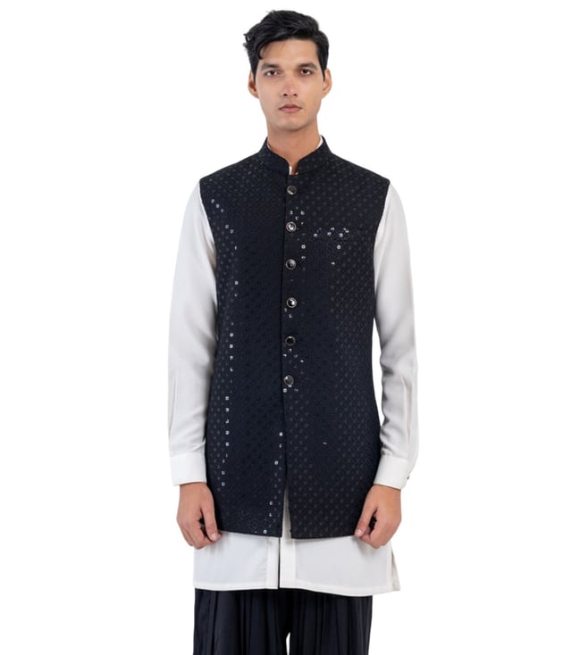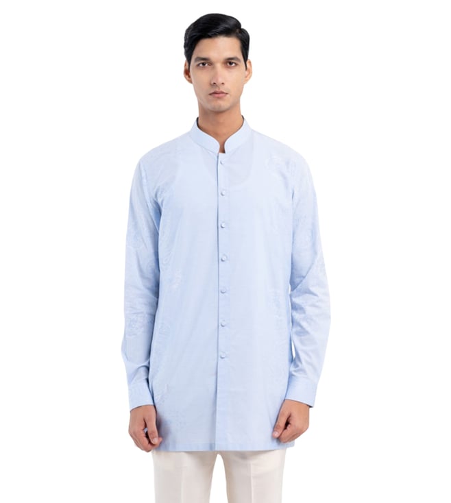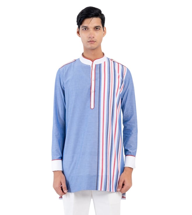 Dark Blue Short Kurta With Double Pockets And Concealed Placket