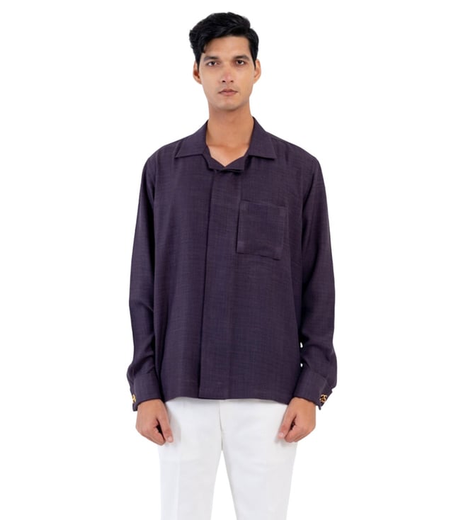 Deep Aubergine Short Shirt Style Kurta With Concealed Placket And French Cuff