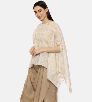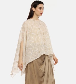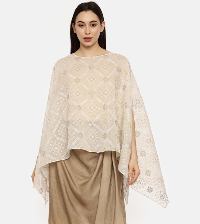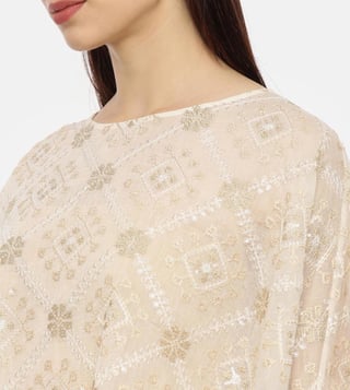 ASMI By Mayank Modi Beige Ivory Silk Embroidered Top