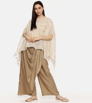 Score high on the fashion meter by wearing this top from Asmi by Mayank Modi. This stylish kaftan top has sequin and embroidery work. Pair it with denim to complete the look. It is made using chanderi. Disclaimer: All other items in the image are only for display purposes and will not be a part of the delivery content. Product colour may slightly vary due to photographic lighting sources. Country Of Origin - India.
