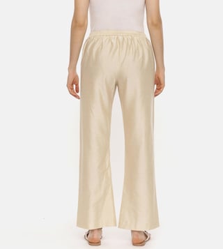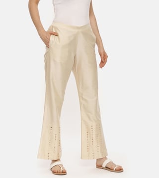 Shaped to elevate your charm, this pair of pants from Asmi by Mayank Modi is a must-have. This embroidered pair can be matched with a top or with a sleeveless sequin blouse to complete the look. It is made using silk and cotton. Disclaimer: All other items in the image are only for display purposes and will not be a part of the delivery content. Product colour may slightly vary due to photographic lighting sources. Country Of Origin - India.