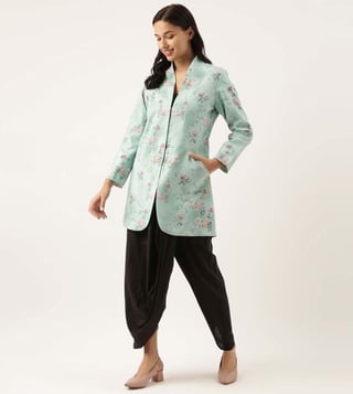 This stylish jacket with detailed embroidery and sequence from ASMI By Mayank Modi is a must-have for every fashion-forward woman of today. Pair it with a skirt or dhoti pants to fetch compliments from all. It is crafted from high-quality 100 percent linen which assures quality. Disclaimer: All other items in the image are only for display purposes and will not be a part of the delivery content. Product colour may slightly vary due to photographic lighting sources. Country Of Origin - India.