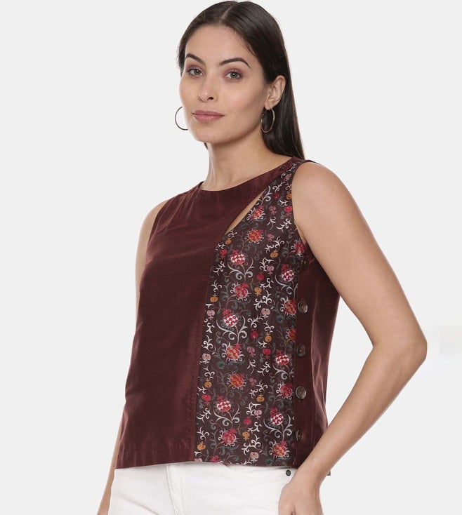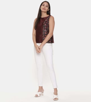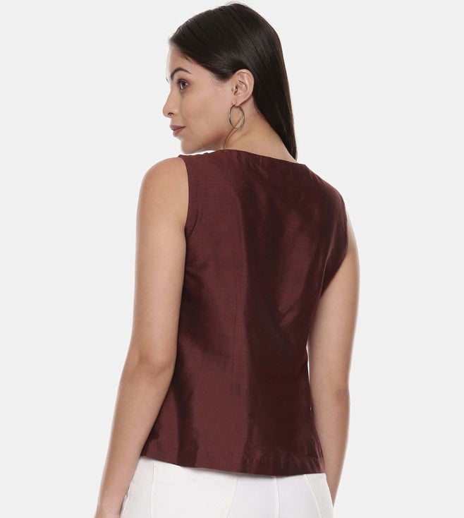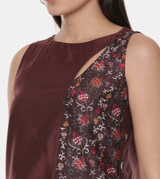Graced up with a magnetic design, this top will add a hint of style to your look. This sleeveless top is highlighted with a printed design. It can be paired with a skirt or palazzo pants. Designed with care using silk/ chanderi, it is soft on the skin and easy to maintain. Disclaimer: All other items in the image are only for display purposes and will not be a part of the delivery content. Product colour may slightly vary due to photographic lighting sources. Country Of Origin - India.