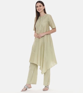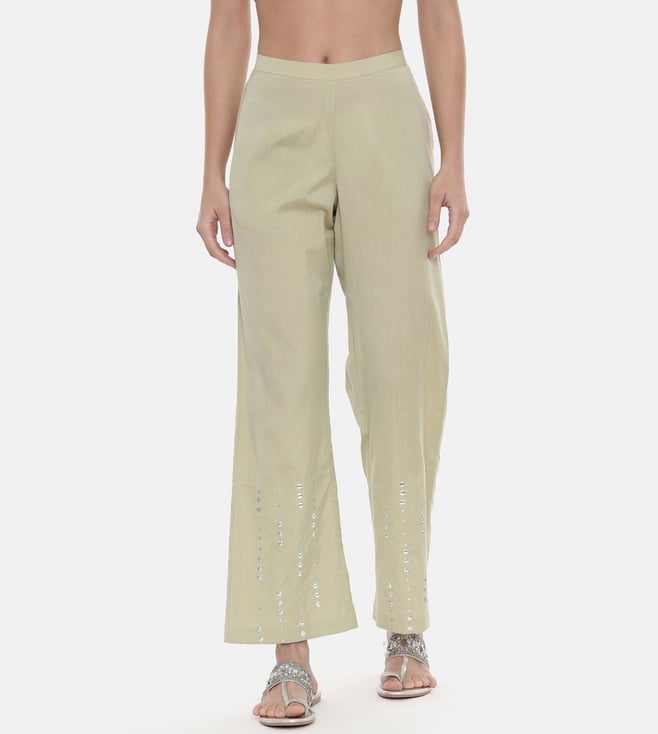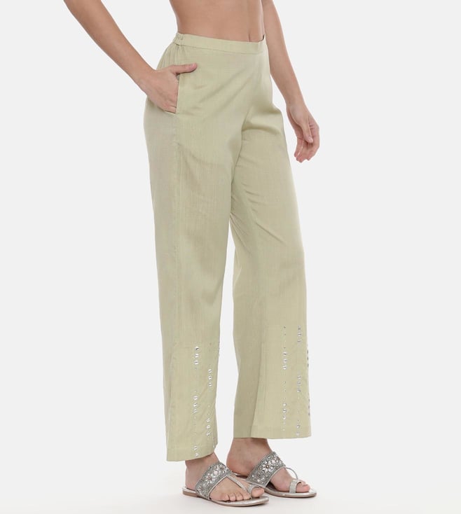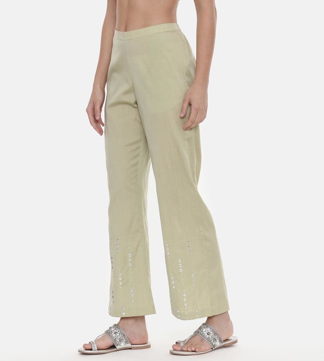 ASMI By Mayank Modi Green Silk Embroidred Pants