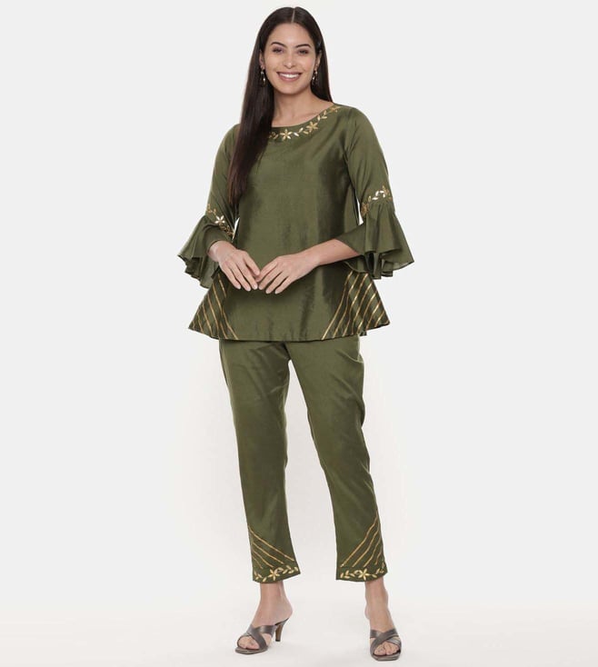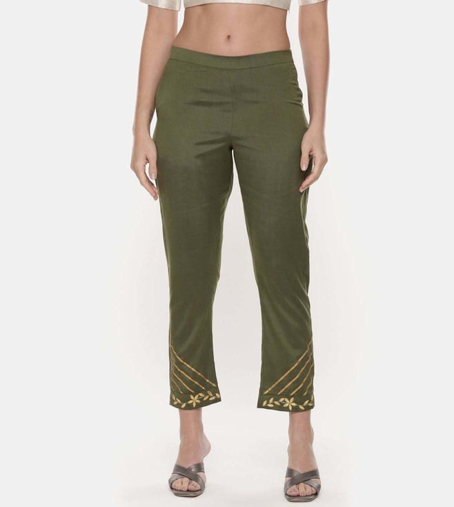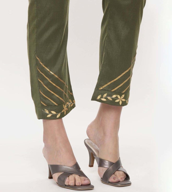 ASMI By Mayank Modi Green Tappered Silk Pants