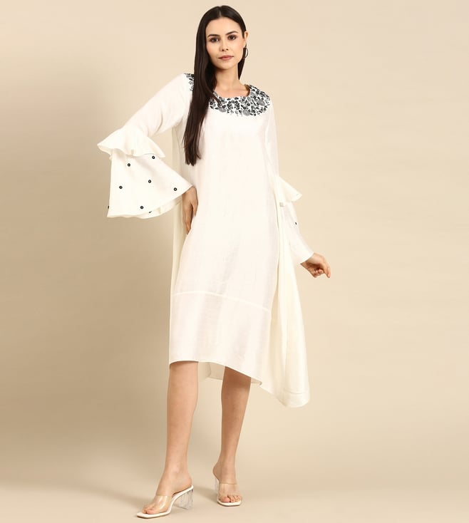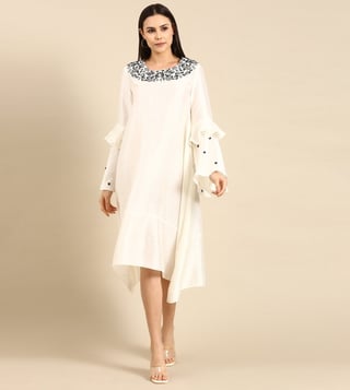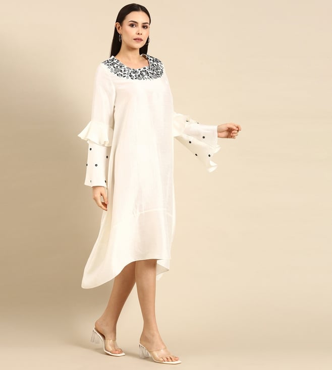 ASMI By Mayank Modi Ivory Silk Embroidered Dress