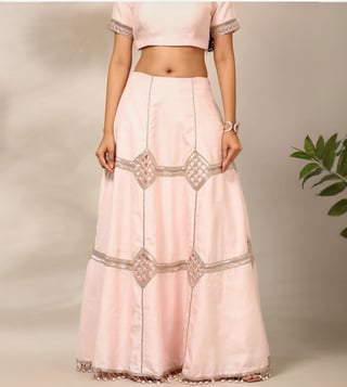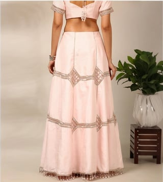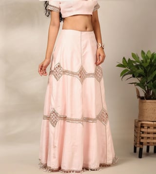 Walk in style by wearing this lehenga. Tailored to sartorial perfection from bemberg silk, it assures a soft and soothing touch against the skin. Disclaimer: Product colour may slightly vary due to photographic lighting sources. Country of Origin - India.