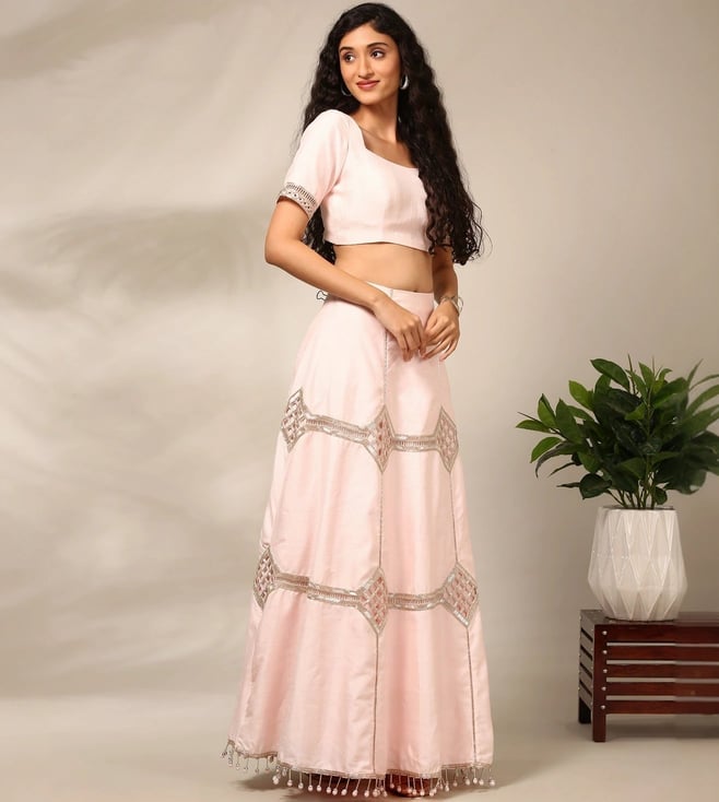 ASMI By Mayank Modi Light Pink Slub Silk Lehenga