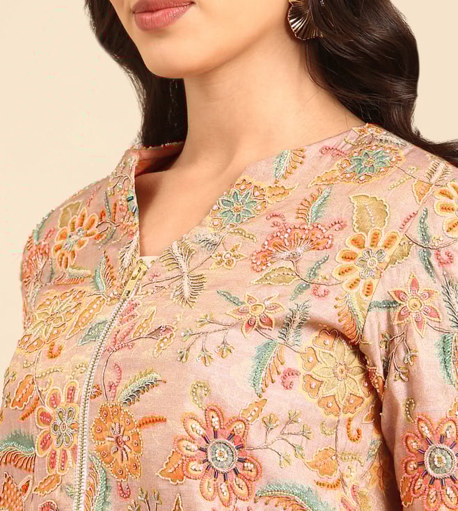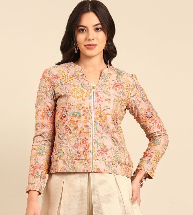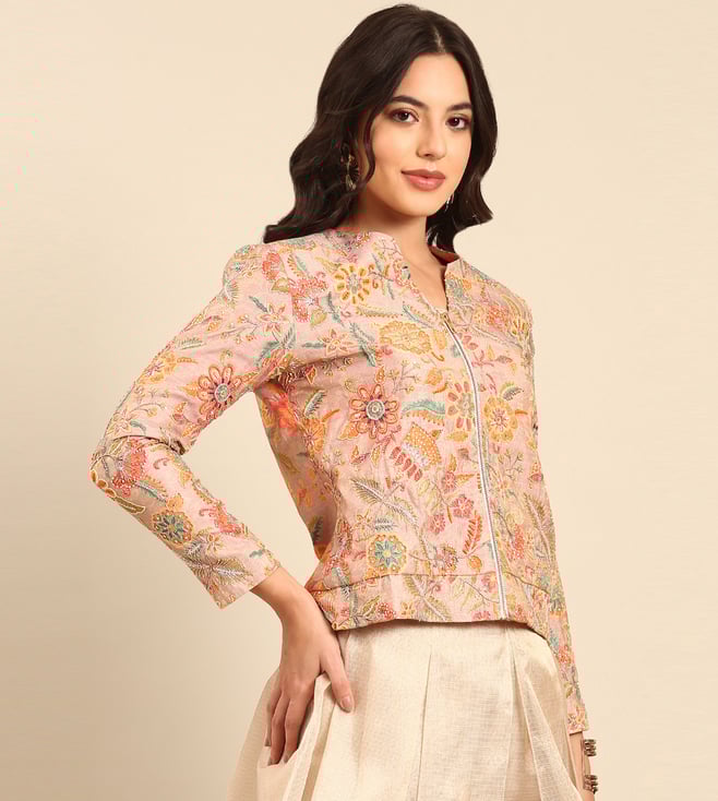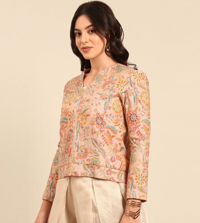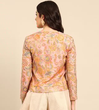 ASMI By Mayank Modi Peach Print Banares Jaquard Jacket