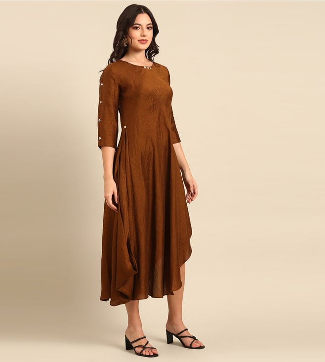 ASMI By Mayank Modi Rust Gold Silk cotton Slub Dress