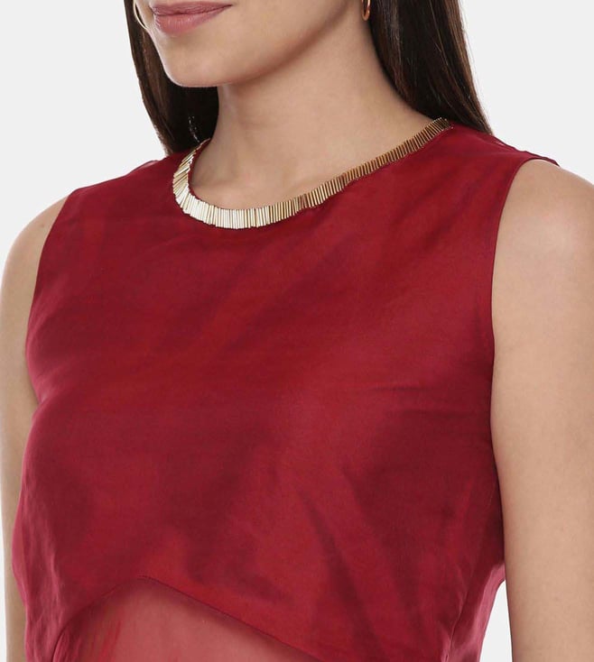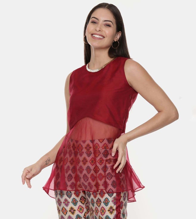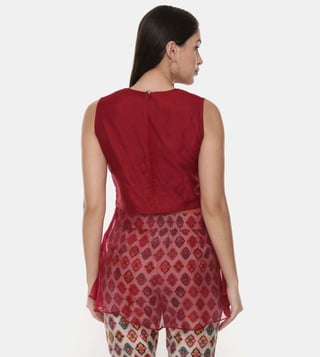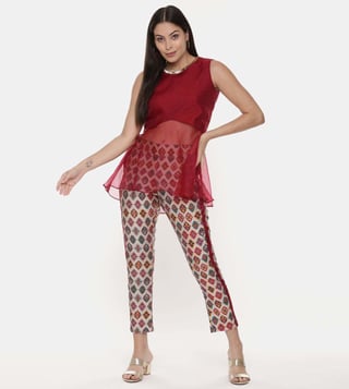 ASMI By Mayank Modi Silk Chanderi Red Top with Printed Pants